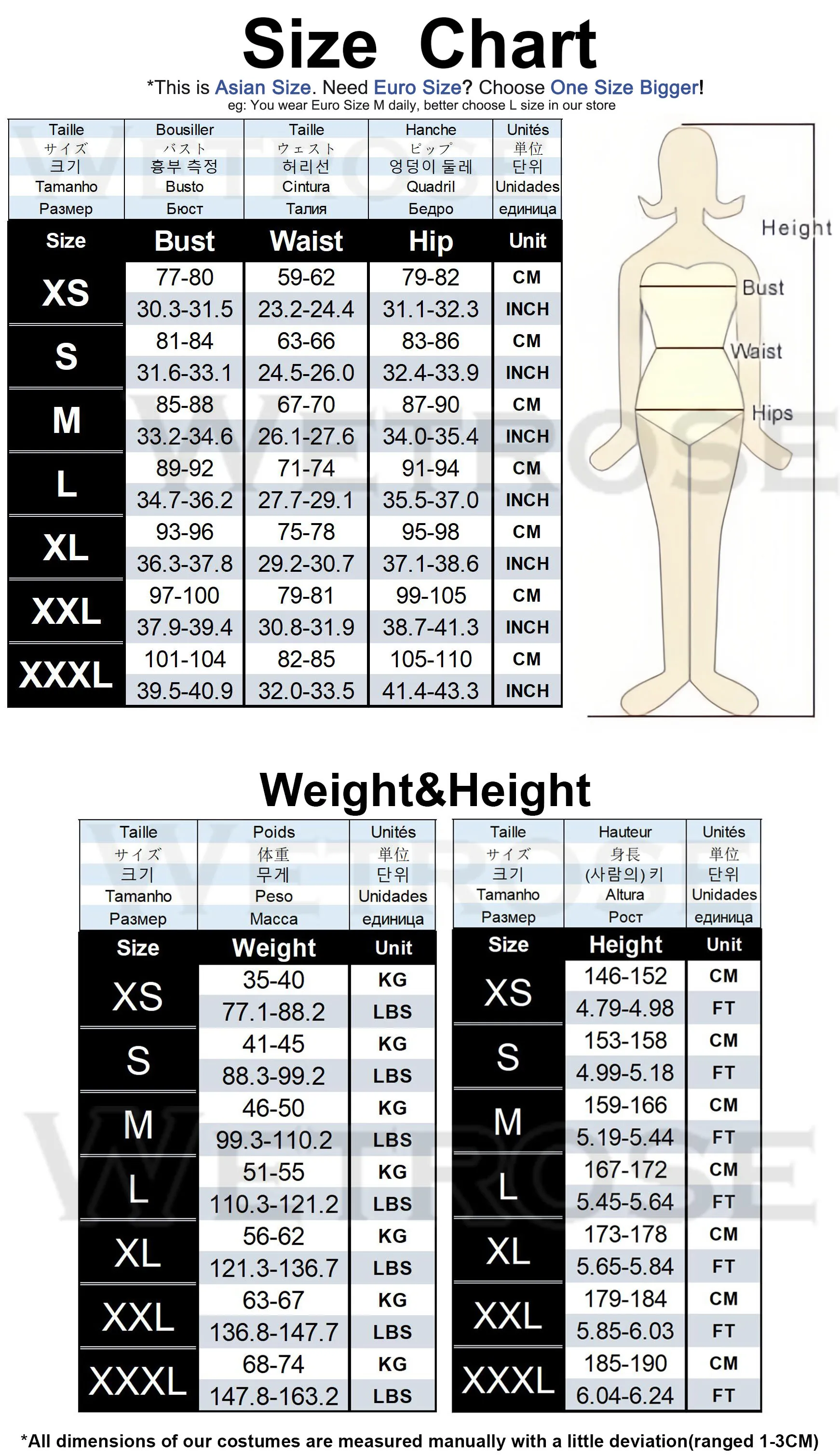 Tamaño: XS ~ XXXL