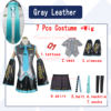 Conjunto completo de Cosplay de Miku, traje de tela de charol gris plateado, zapatos de Cosplay de Miku, tocado, traje, uniforme JK, Cosplay