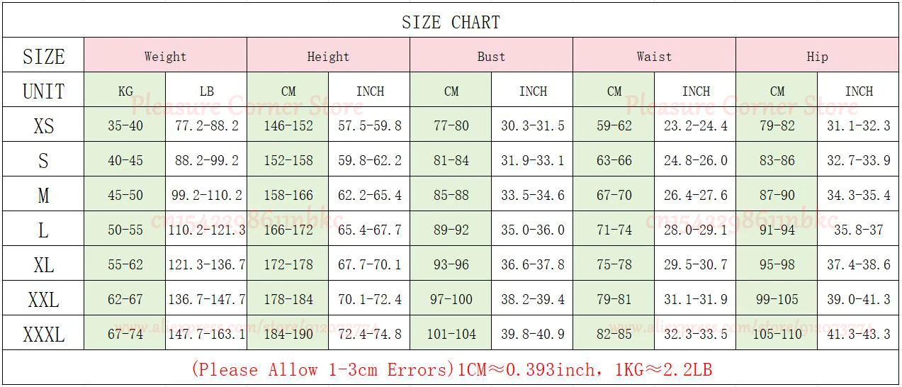 1. La tabla de tallas es para la versión de China, los compradores no deben elegir la talla según la talla de su país.Mide tus datos 3D antes de comprar y elige el tamaño correcto de acuerdo con la tabla de tallas.