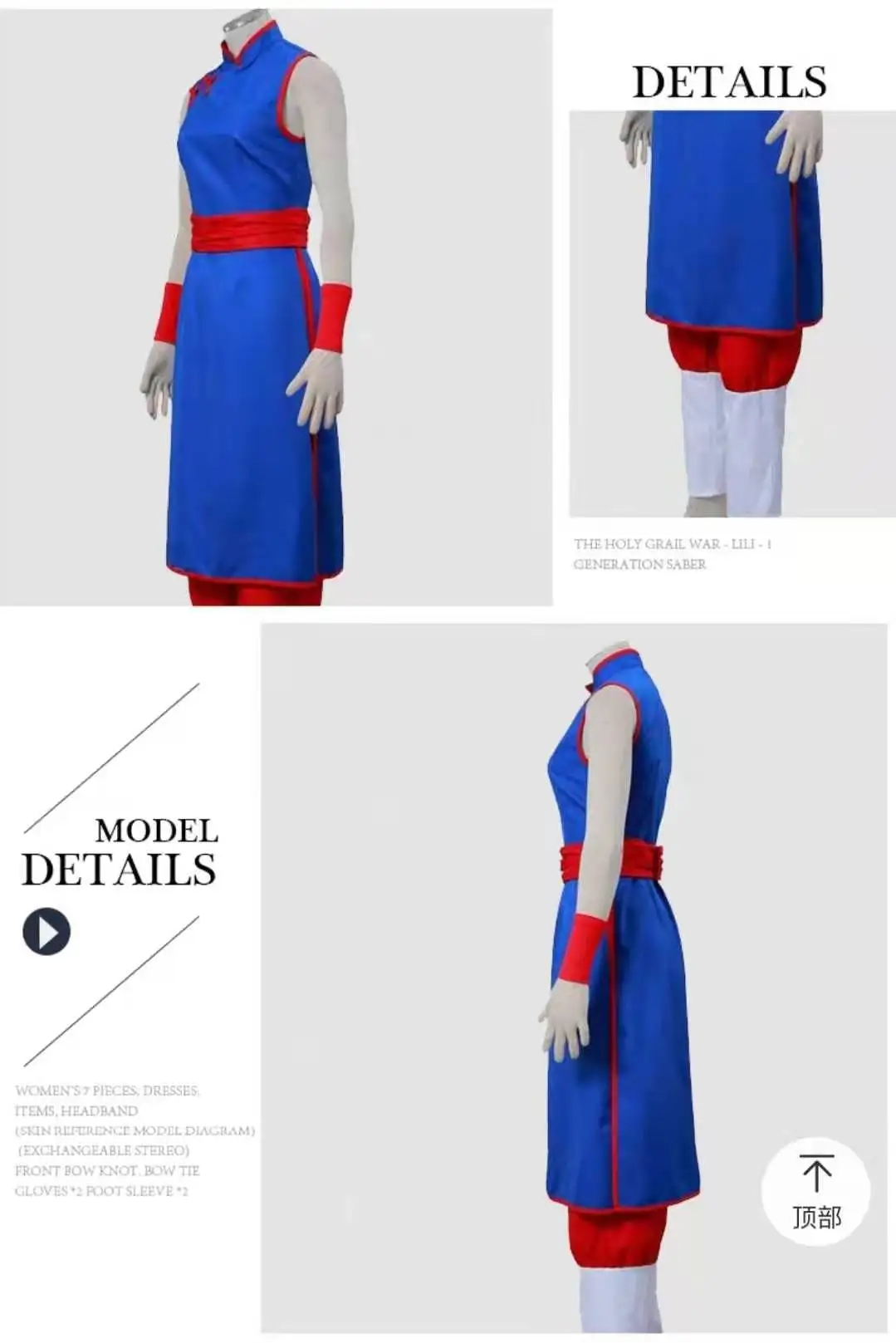Disfraz de Dragon Ball Chichi, camisa de Anime, uniforme azul, accesorios Cheongsam, camisa de mujer, vestido de uniforme, conjunto de fiesta de Navidad, regalo