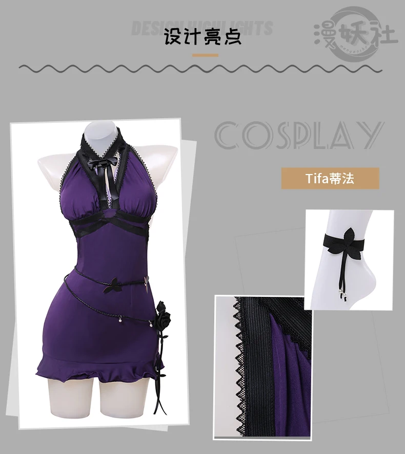 Disfraz de juego Final Fantasy VII Tifa Lockhart para mujer, vestido Sexy púrpura para fiesta de Halloween
