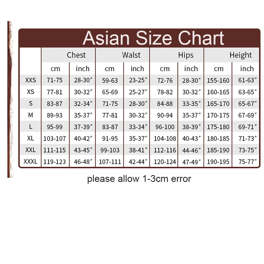 Talla del disfraz: como se muestra a continuación la tabla de tallas asiáticas