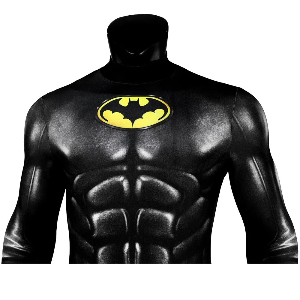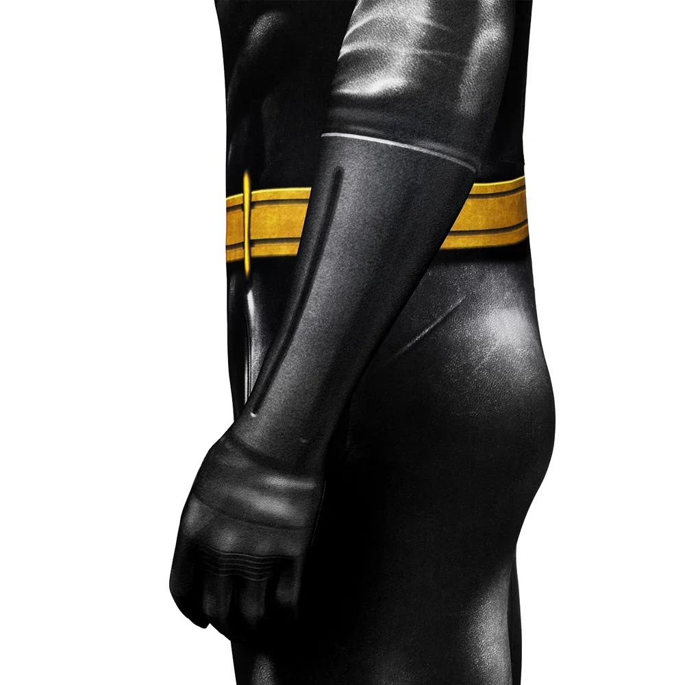 Disfraz de superhéroe Bruce Wayne, mono de murciélago para hombre, traje estampado de Carnaval de Halloween, mono ajustado, capa, ropa de fiesta