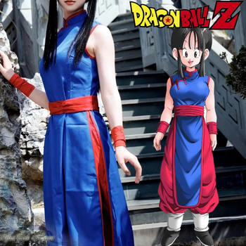 Disfraz de Dragon Ball Chichi, camisa de Anime, uniforme azul, accesorios Cheongsam, camisa de mujer, vestido de uniforme, conjunto de fiesta de Navidad, regalo