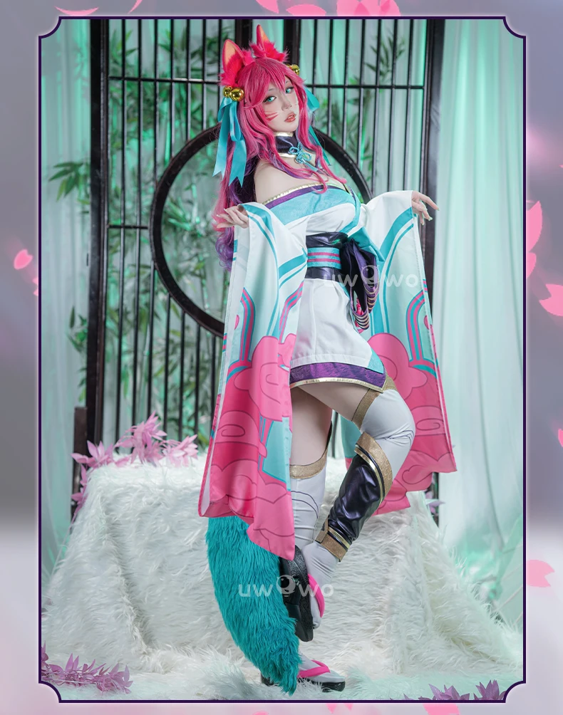 En STOCK UWOWO LOL Ahri Cosplay disfraz juego LOL Spirit Blossom Cosplay Ahri nuevo el zorro de nueve colas Halloween Oufit