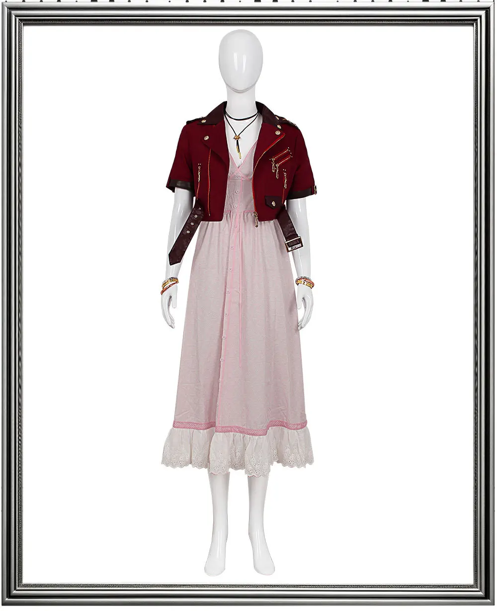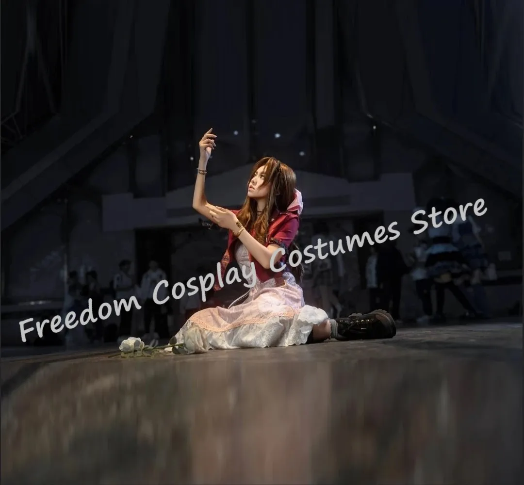 Juego de Cosplay de fantasía VII FF7 Aerith Gainsborough, disfraz de Cosplay, abrigo y vestido Aerith, conjunto completo, trajes de fiesta de Halloween