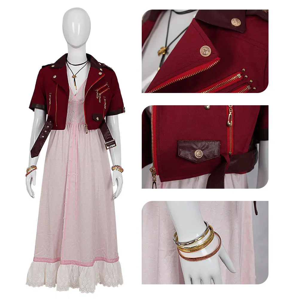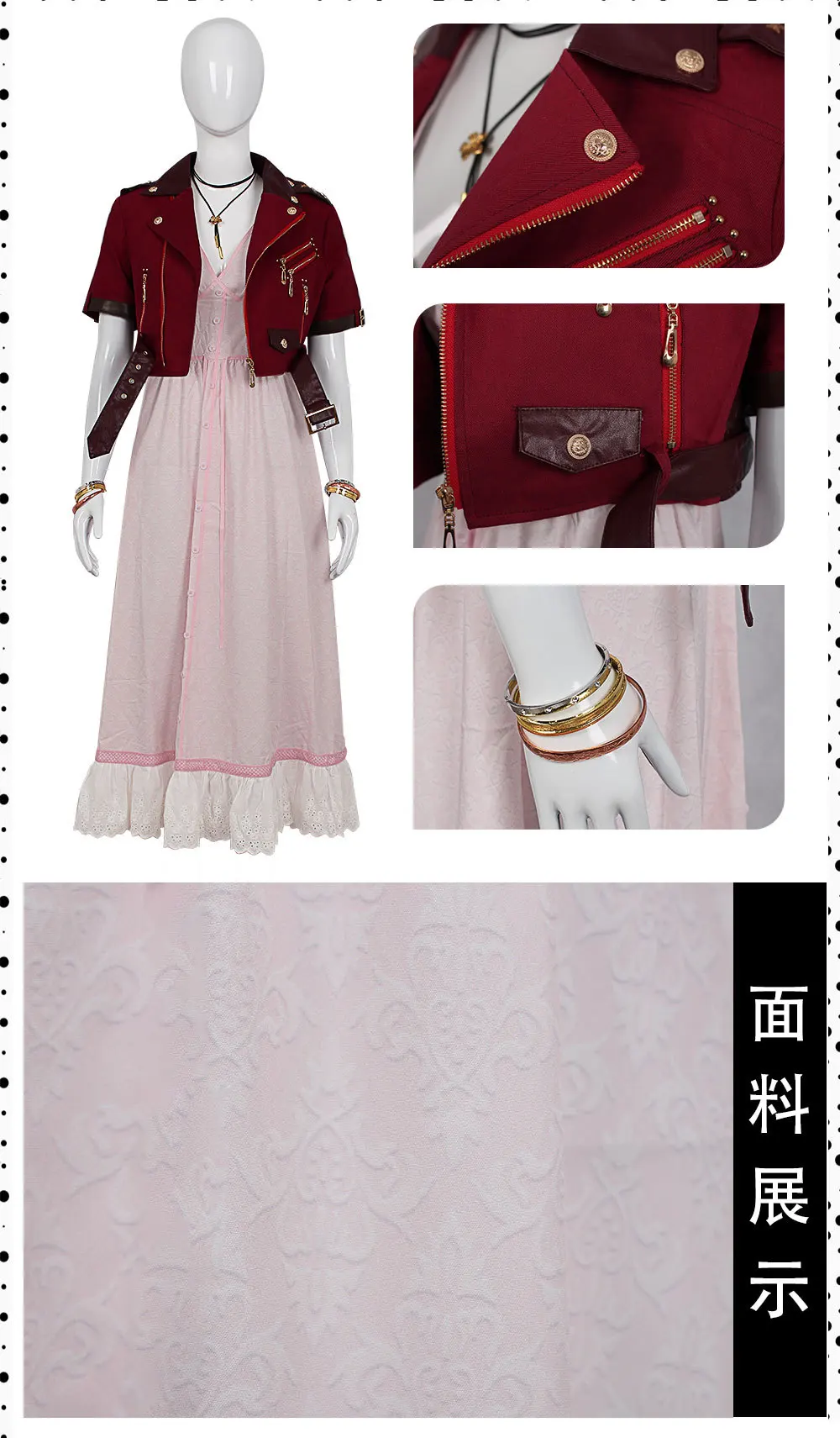 Juego de Cosplay Fantasy VII FF7 Aerith Gainsborough, disfraz de Cosplay Aerith, abrigo y vestido, conjunto completo de trajes de fiesta de Halloween