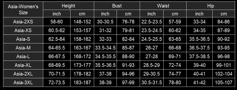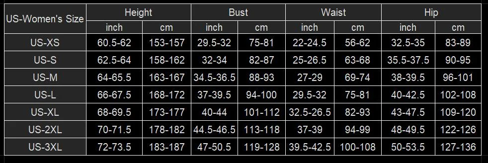Si no sabe qué talla le conviene, proporcione su altura/busto/cintura/tamaño de cadera a nuestro servicio de atención al cliente.