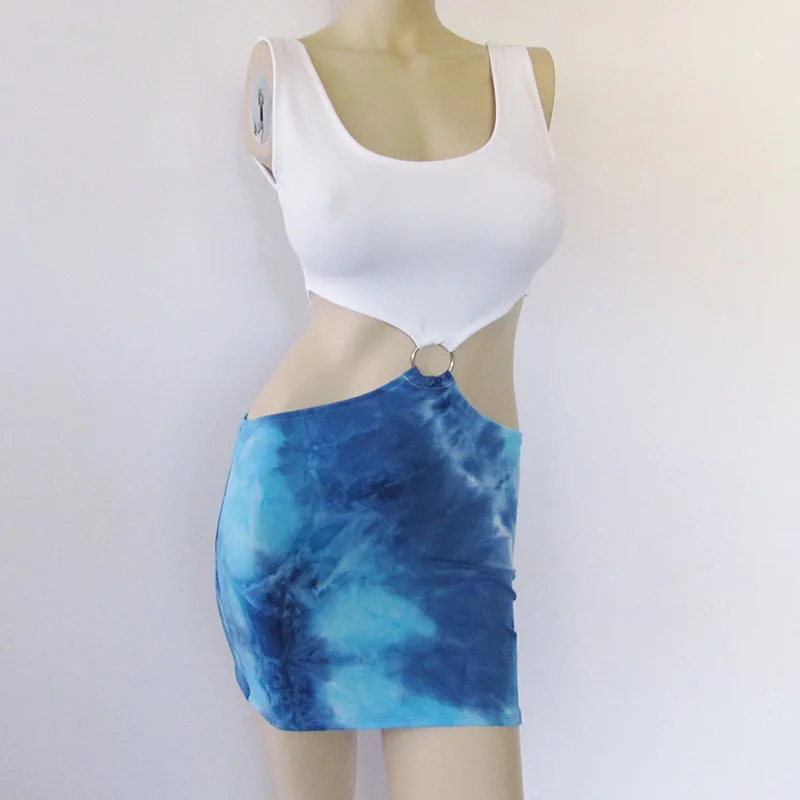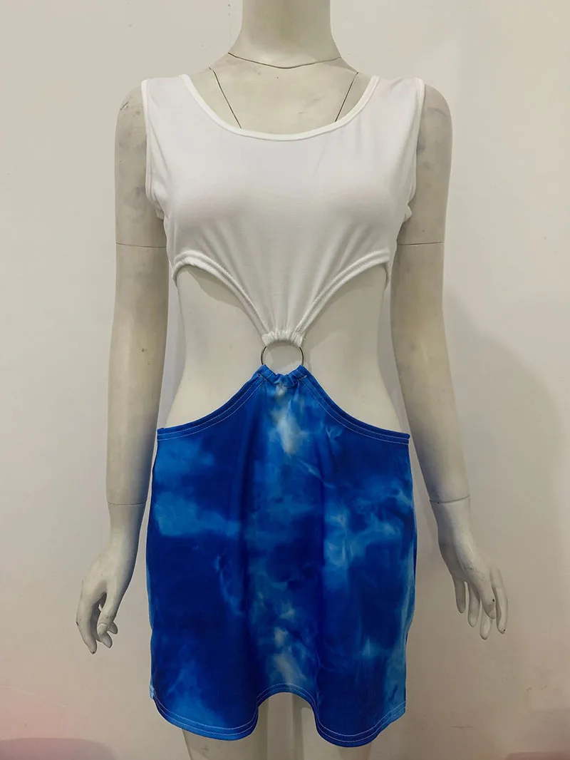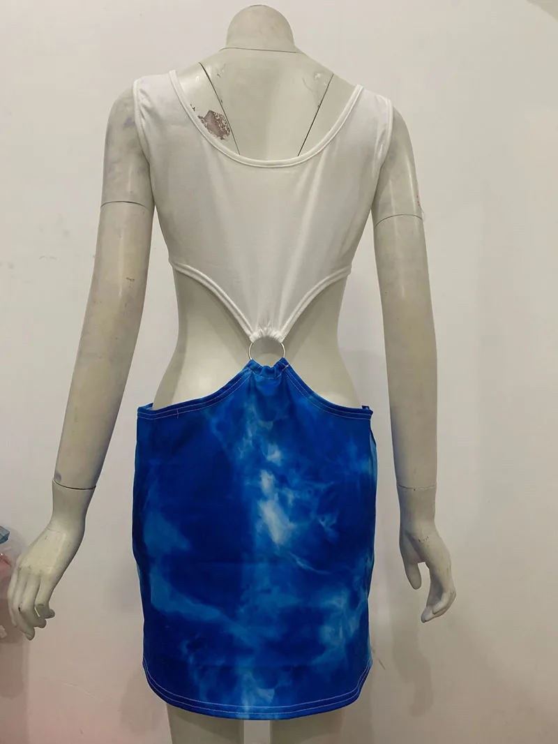 Película bonita mujer Julia Roberts Cosplay disfraz de película de comedia romántica Sexy azul cintura desnuda vestido con recorte TieDye Cosplay de Halloween