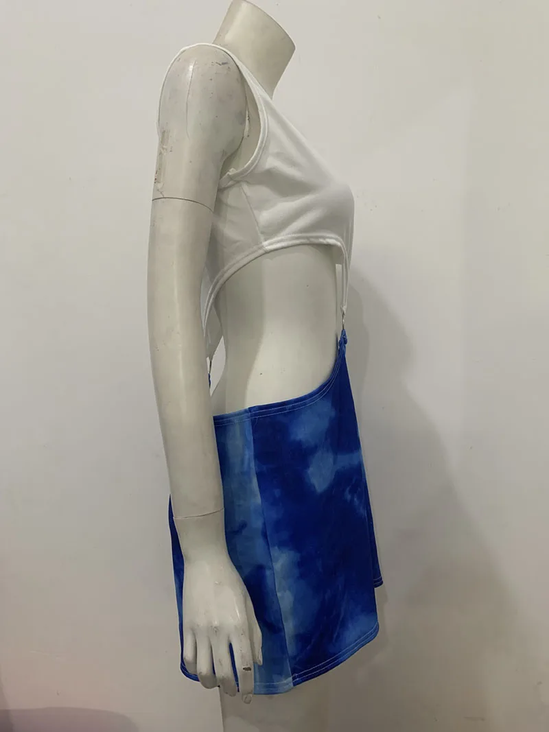 Película bonita mujer Julia Roberts Cosplay disfraz de película de comedia romántica Sexy azul cintura desnuda TieDye vestido recortado Cosplay de Halloween